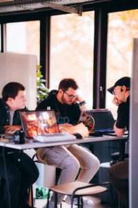 Aus Platzgründen wird es kaum möglich sein, einen kompletten Arbeitsplatz einzurichten. Bildschirme und Desktop-PCs werden eher keinen Platz haben. Die Sitzplätze sind so verteilt, dass du entweder auf einer Couch, einem Sessel oder an einem Tisch Platz nehmen kannst, ohne, dass sich die Teams gegenseitig stören. Es ist aber nicht möglich, jedem genug Platz für einen Bildschirm zu bieten. Danke für dein Verständnis.
